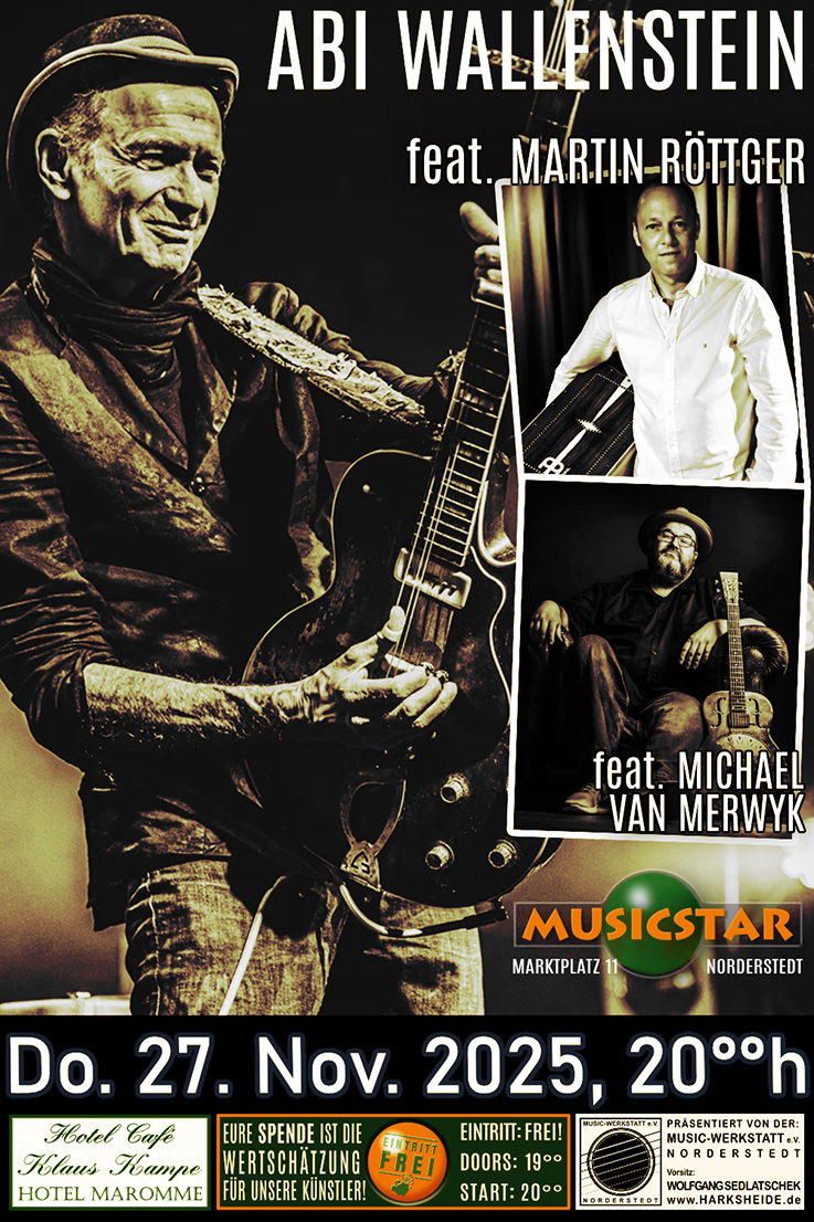 Abi Wallenstein, Martin Röttger, Michael van Merwyk ( D ) - 22.11.2025 Norderstedt, Music Star Einlass: 19°° Uhr, Beginn 20°° Uhr
